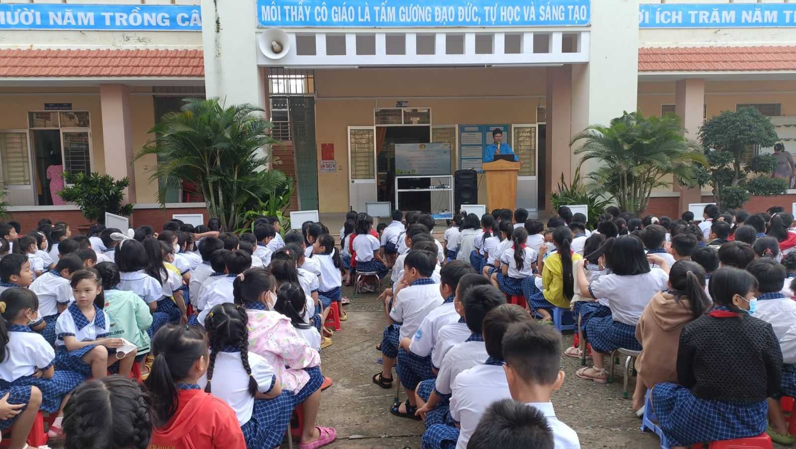 Em Trần Thanh Như Ngọc đã kể câu chuyện "Giữ lời hứa" về Bác Hồ trong tiết chào cờ đầu tuần, với sự tham gia của 714 học sinh. Hoạt động giúp các em học sinh rút ra bài học về sự trung thực và giữ lời hứa, đồng thời lan tỏa giá trị đạo đức tốt đẹp. Sau đây là một số hình ảnh của hoạt động: